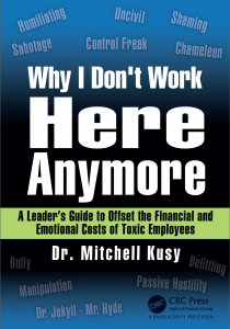 Toxic employees not only get under our skin, but also erode the financial worth of any organization. In one study conducted (Kusy & Holloway, 2009), a whopping 94% of over 400 leaders reported dealing with the devastation caused by these chameleons who “knock down but kiss up.” In Why I Don’t Work Here Anymore, I present the proactive solutions to prevent these individuals from ever entering your organization, along with the reactive ways to deal with them once they’re there.